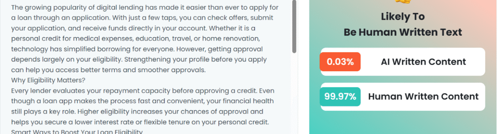 Every lender evaluates your repayment capacity before approving a credit. Even though a loan app makes the process fast and convenient, your financial health still plays a key role. Higher eligibility increases your chances of approval and helps you secure a lower interest rate or flexible tenure on your personal credit.